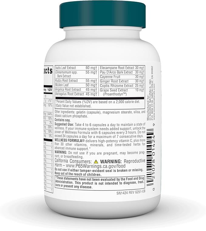 Source Naturals Wellness Formula Bio-Aligned Vitamins & Herbal Defense for Immune System Support - Dietary Supplement & Immunity Booster - 60 Capsules