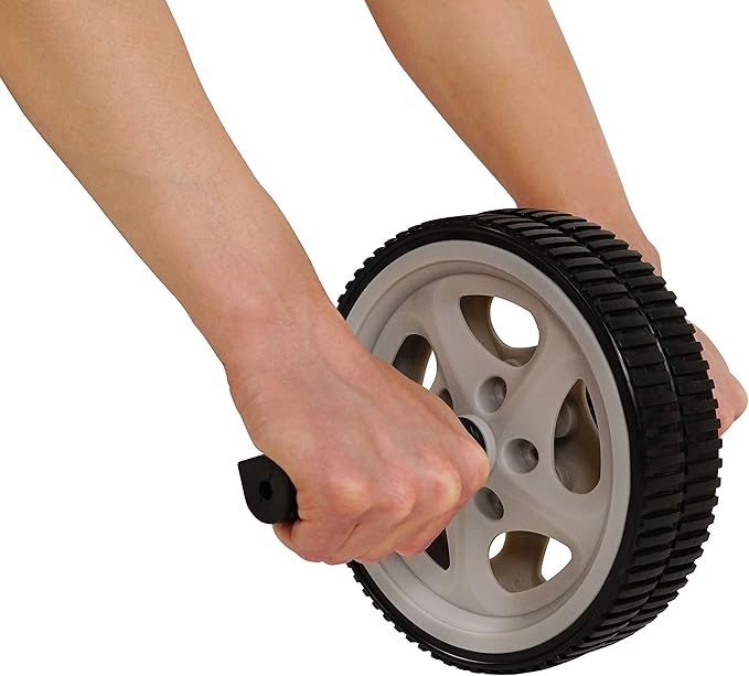 - DOUBLE-WHEEL DESIGN: Wide shaped wheel ensures stability and bears the weight of your entire body. The wheel’s textured surface promotes stability and control. Handles prevent slipping and while reducing hand fatigue.