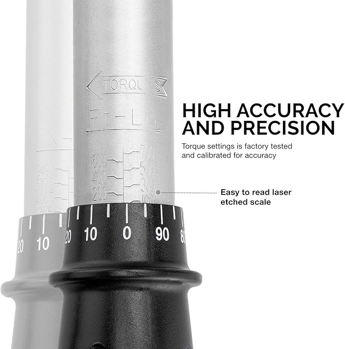 - LONG-HANDLED TOOL: The wrench click stick has a 48-inch length, making it easy to loosen tough bolts at high torque settings in a range of 100 to 700 ft-lb. The handle of this wrench tool has a soft, firm grip for easy turning and pulling.