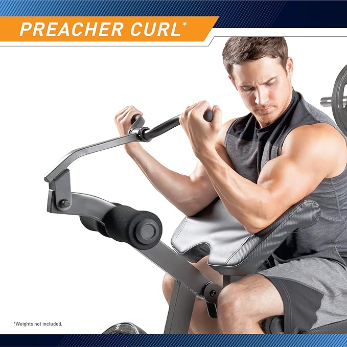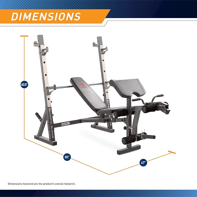 Marcy Olympic Workout Bench for Home Gym Strength Training Equipment with Preacher Curl Pad and Weight Rack Storage, White/Black