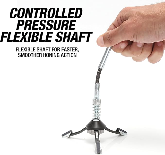 - Smooth Honing Action: Features a flexible shaft and spring-loaded legs for controlled pressure,: resulting in a smoother honing action and a proper finish for new seals to seat against, enhancing cylinder life.
