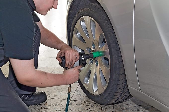 HAZET 903SLG-22 1/2 Inch Impact Socket, 22 Mm AF, External Hexagonal Traction Profile, For Aluminum Rims, Color-Coded Plastic Sleeve Green