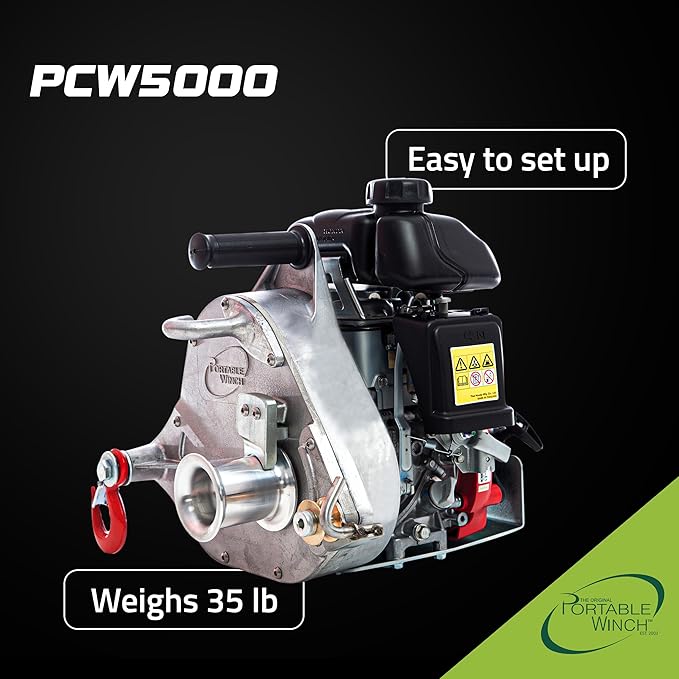 - Pulling poower maximized - Unlock the full potential of this portable winch with the PCW5000 gas-powered winch kit. With essential accessories and a Block & Tackle System, its 2,200-lb capacity multiplies to 11,000 lbs using two double pulleys.