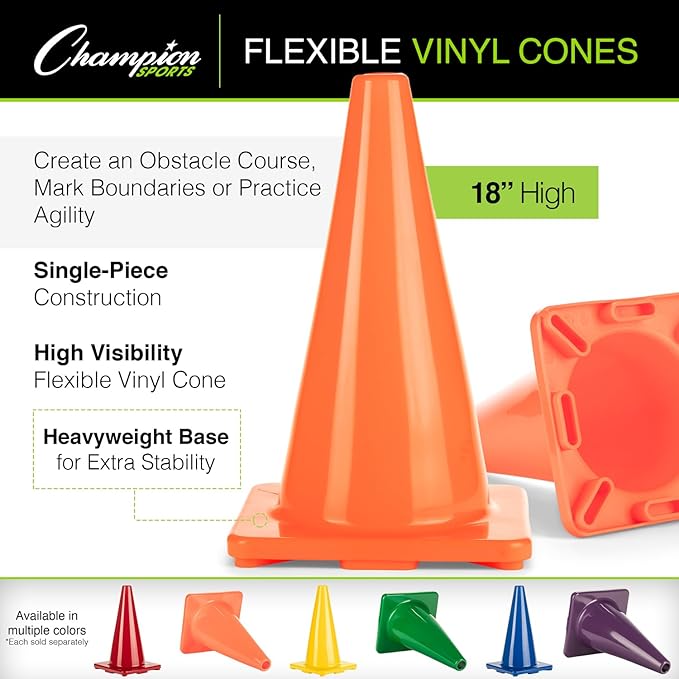 Champion Sports Hi Visibility Flexible Vinyl Cones