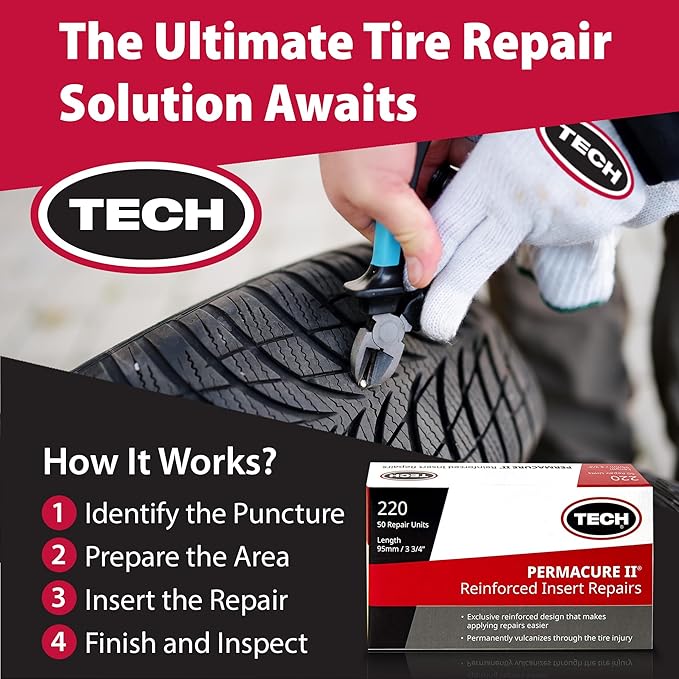 - Permanent Bond for Lasting Repairs: TECH Tire Repairs Permacure Inserts bond permanently to the tire, sealing out moisture and contaminants better than temporary tire plugs or string repairs. Ideal for long-term tire fix in emergency kits.
