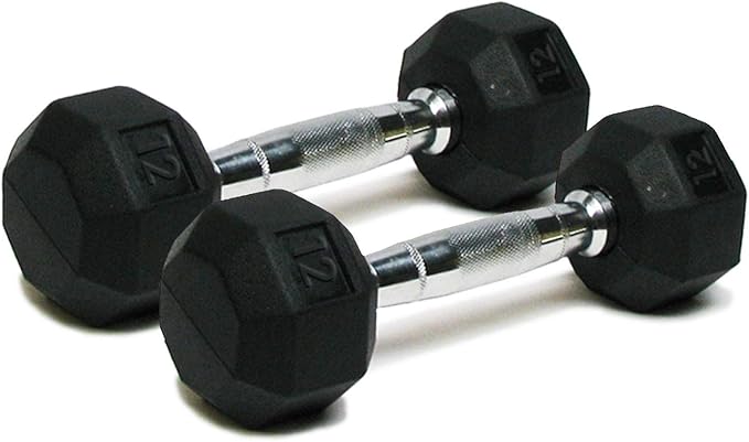 Dumbbells Hand Weights Set of 2 - Rubber Hex Chrome Handle Exercise & Fitness Dumbbell for Home Gym Equipment Workouts Strength Training Free Weights for Women, Men