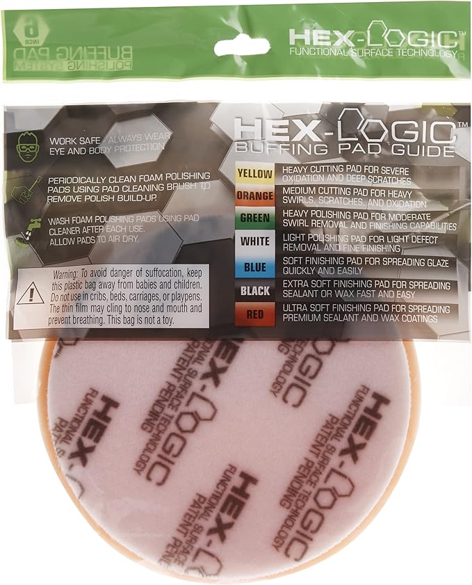 Chemical Guys BUFX_102HEX6 BUFX_102_HEX6 Hex-Logic Medium-Heavy Cutting Pad, Orange (6.5 Inch Pad Made for 6 Inch Backing Plates), 1 Pad Included