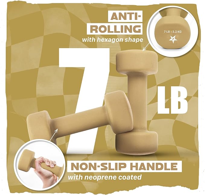 Yes4All Neoprene Coated Dumbbell Hand Weight Sets of 2 - Multiple Weight Options with 15 Colors, Anti-roll, Anti-Slip, Hexagon Shape