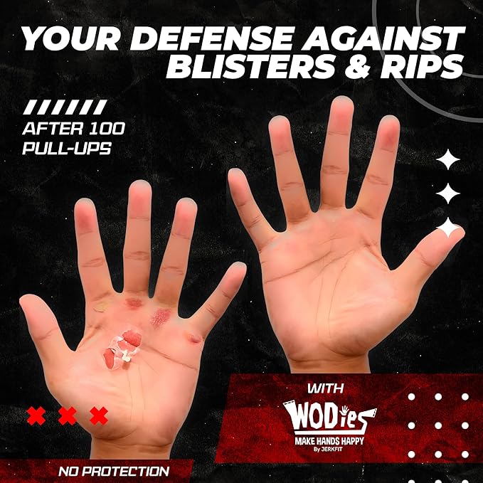 - Heavy-Duty Support and Durability; Our grips for women and men come with heavy-duty built-in supportive wrist braces; the exceptionally durable palm material of WODies Jerkfit grips absorbs sweat and keeps your hands dry; built to withstand severe abuse