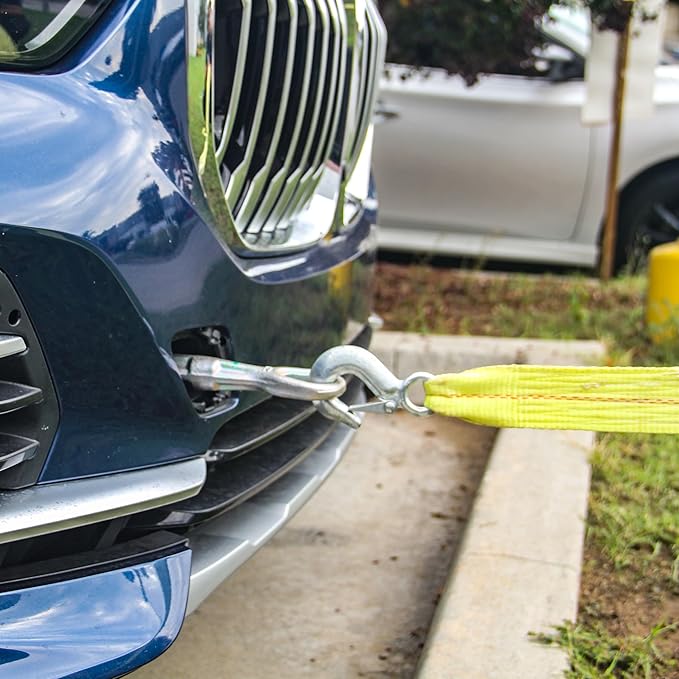 - [Applications]: This high strength towing strap will make easy work of recovering you stuck or broke-down vehicle;