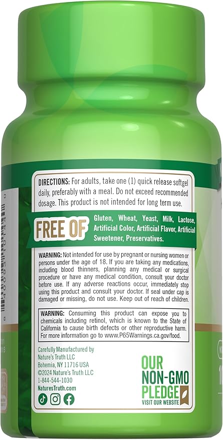 - HONEST & TRANSPARENT: Nature’s Truth is committed to delivering the best quality wellness products