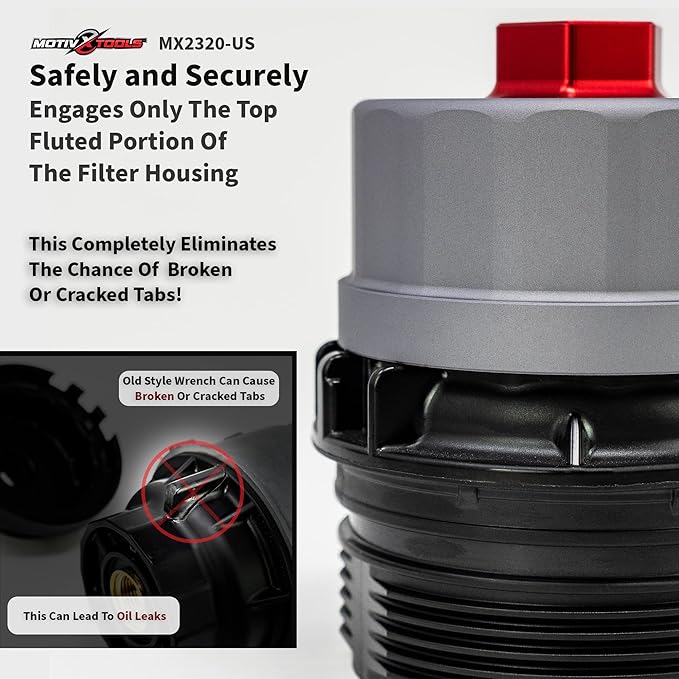 - WILL NOT BREAK TABS ON FILTER - This patent pending second generation filter removal tool features a “notch-less” design which securely grips the fluted plastic portion of the oil filter cap without engaging the tabs like older wrench designs. This prevents the tabs from cracking or breaking off which can lead to serious oil leaks.