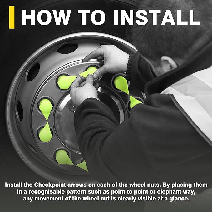 Checkpoint Wheel Nut Indicator 21 mm Yellow – Visual Indicator for Fleets, Industrial Trucks, Agricultural Vehicles, and Goods Transporters – Lug Nut Arrows Yellow 21 mm (Bag of 100 Pcs)