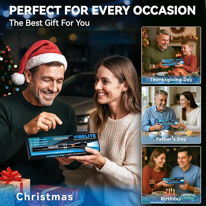 VIBELITE Extendable Magnetic Flashlight with Telescoping Magnet Pickup Tool-Cool Gadget Christmas Gifts Stocking Stuffers for Men, Teen Boys, Husband, Dad, Father, Mechanic, Him, Women, Black