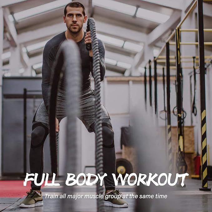 - 【3 Strand Design】: Available in 30', 40' and 50' lengths with 1.5" thickness. Shorter workout ropes are great for beginners trainers in home gym rope training, longer battle ropes are challenging for Strength professionals and fitness sprofessionals.