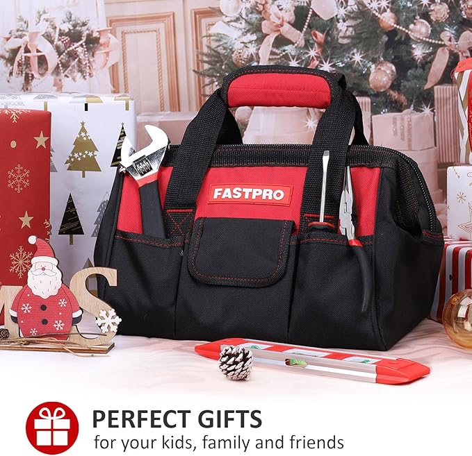 FASTPRO 215-Piece Home Repairing Tool Set with 12-Inch Wide Mouth Open Storage Bag,Household Hand Tool Kit,Red