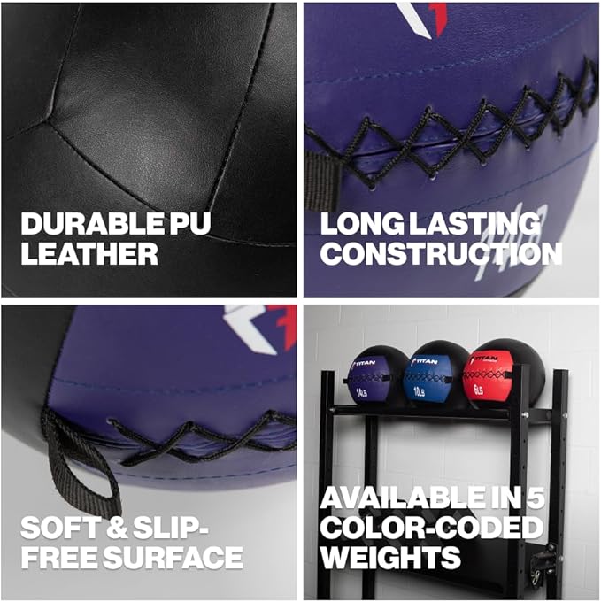 - SMOOTH GRIP: Crafted from durable, high-quality PU leather and PP cotton, the Titan Wall Balls are both soft and easy to grip. The large, ergonomic design ensures a comfortable hold, making it easy to throw, catch, and slam, even during intense, sweaty workouts.