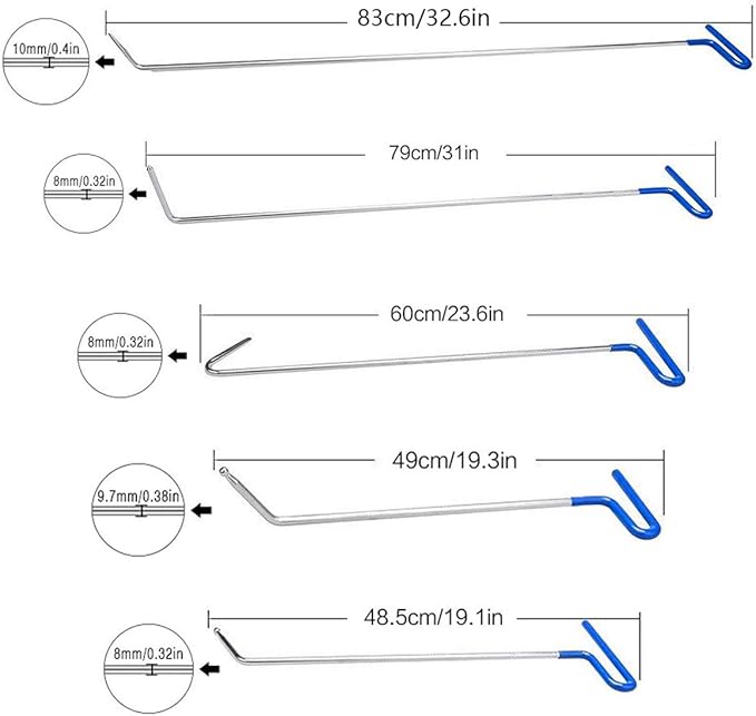 - Professional stainless steel paintless dent repair rods suit for professional technicians to repair dents hail damage and door dings