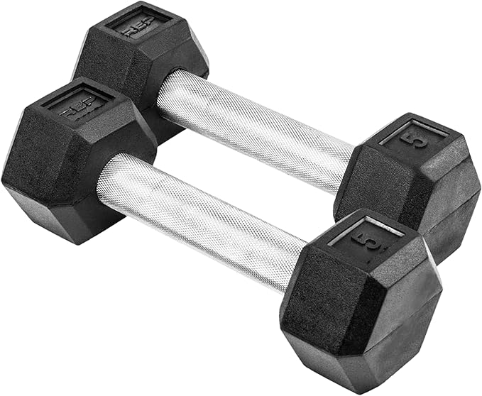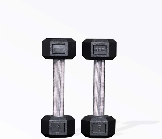 Rep Fitness Rubber Hex Dumbbell(s) - Singles (55LB +) and Pairs (5LB - 50LB) - Low Odor, Fully Knurled Handle