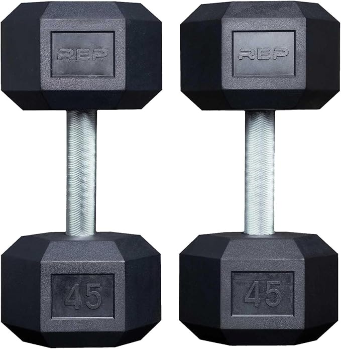 - WHAT’S INCLUDED: One pair of 45lb REP dumbbells