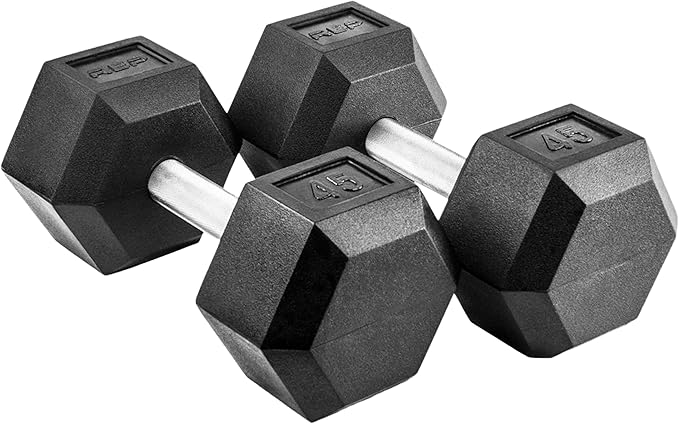 Rep Fitness Rubber Hex Dumbbell(s) - Singles (55LB +) and Pairs (5LB - 50LB) - Low Odor, Fully Knurled Handle