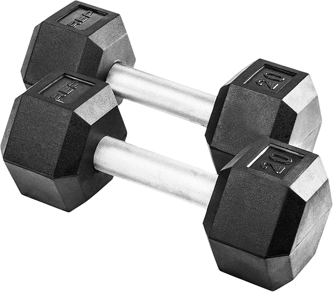 Rep Fitness Rubber Hex Dumbbell(s) - Singles (55LB +) and Pairs (5LB - 50LB) - Low Odor, Fully Knurled Handle