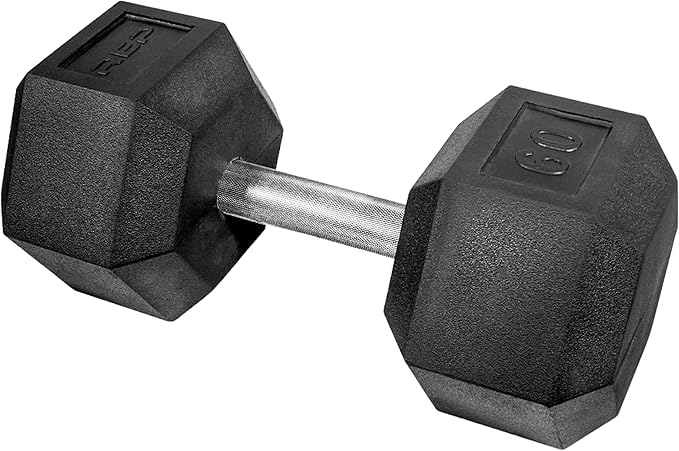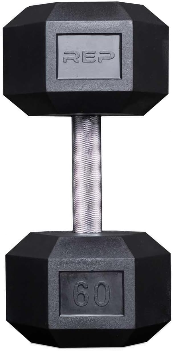 Rep Fitness Rubber Hex Dumbbell(s) - Singles (55LB +) and Pairs (5LB - 50LB) - Low Odor, Fully Knurled Handle