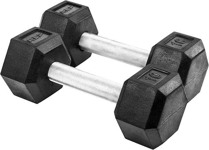 Rep Fitness Rubber Hex Dumbbell(s) - Singles (55LB +) and Pairs (5LB - 50LB) - Low Odor, Fully Knurled Handle