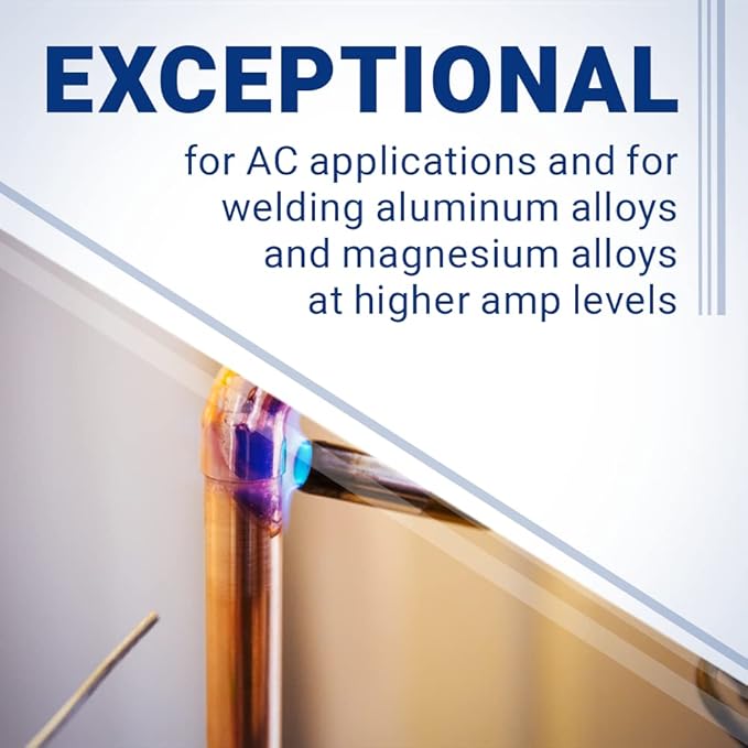 - EXCEPTIONAL for AC applications and for welding aluminum alloys and magnesium alloys at higher amp levels