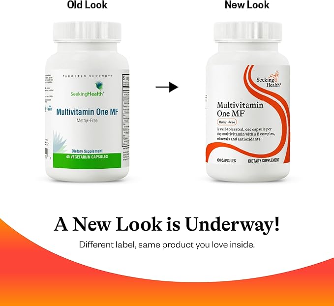 Seeking Health Multivitamin One MF, 1 a Day Multivitamin Supplement for Adults, Methyl-Free Bioavailable B12 and Folinic Acid, Vitamin A, PQQ, MTHFR Support, Vegetarian Capsules (45 Capsules)