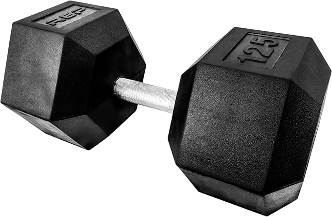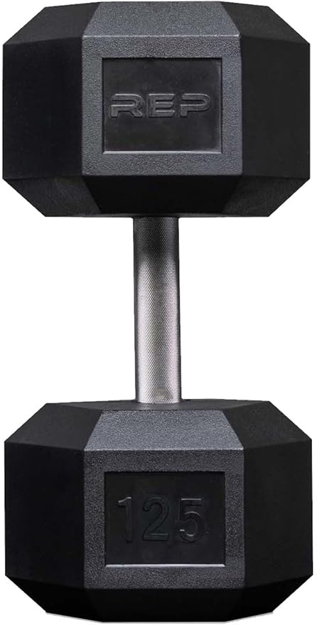 Rep Fitness Rubber Hex Dumbbell(s) - Singles (55LB +) and Pairs (5LB - 50LB) - Low Odor, Fully Knurled Handle