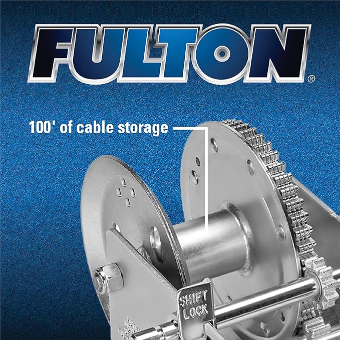 - COMPATIBILITY: The Fulton marine winch is designed for use with wire cable (sold separately) and can accommodate 100-feet x 7/32-inch cable storage.