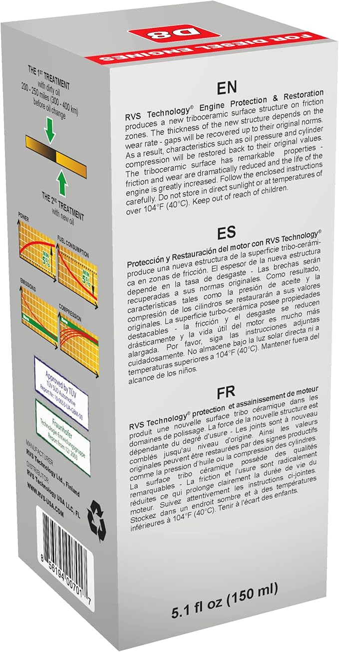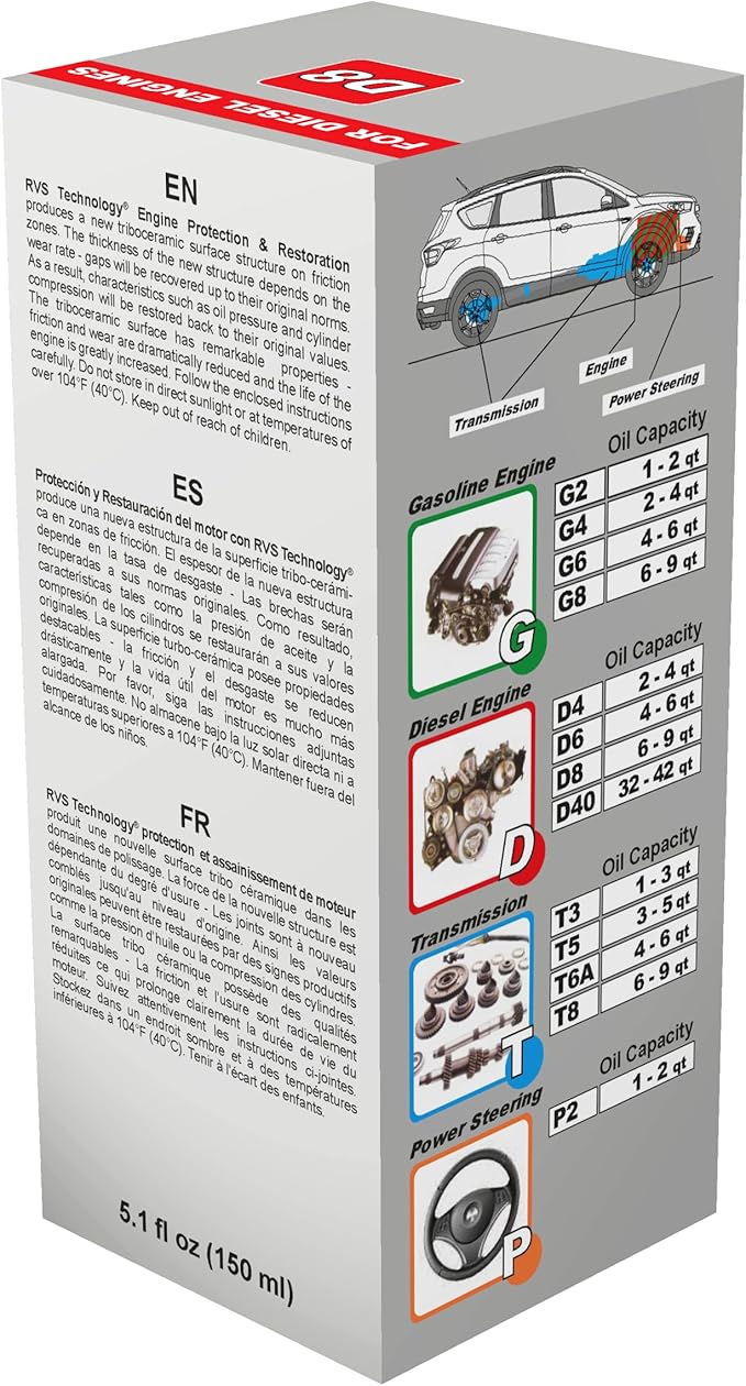 D8 engine oil treatment, For Diesel engines with a motor oil capacity up to 9 quarts; Safely Restore and protect your Car, Truck, Motorcycle and all other engines