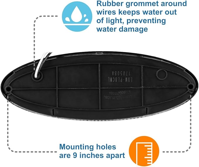 - Durability: All-weather molded plastic housing and durable lens prevents corrosion. Removing the snap on trim reveals water tight housing for lighting while on the back of the light wires exit through a rubber grommet to help prevent water entry and damage.