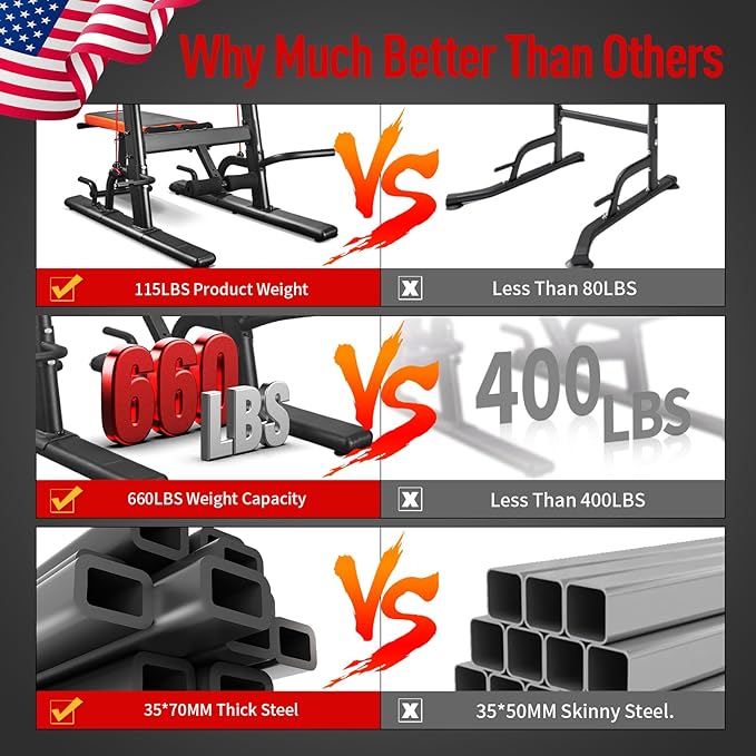 - Why Choose HARISON Power tower: HARISON power tower dip station have 115 lbs for own weight, which provides incomparable stability for your workout. We use real stuff to made our power tower machine, and past thousands of capacity test, HARISON ORIGINAL DESIGN, all our data are data are TRUE and RELIABLE, Real picture shooting, No exaggerating. What you see is what you get !