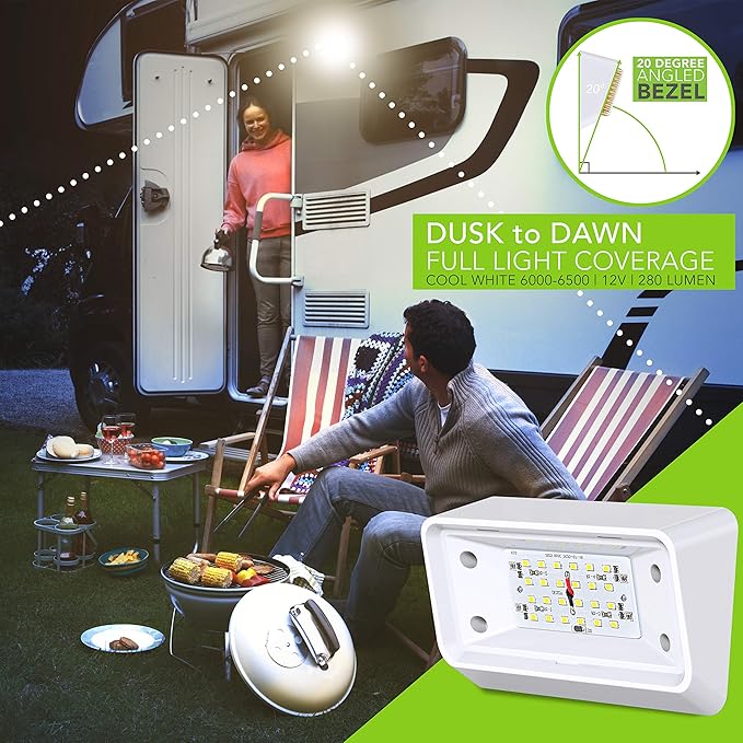Leisure LED RV Exterior Porch Utility Light - 12v 280 Lumen Lighting Fixture. Replacement Lighting for RVs, Trailers, Campers, 5th Wheels. White Base, Clear and Amber Lens Included (White, 1-Pack)