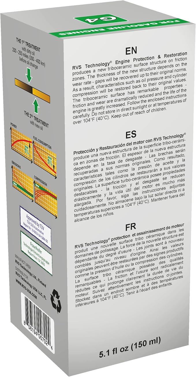 G4 Engine Oil Treatment, for Gasoline Engines with a Motor Oil Capacity up to 4 quarts; Save Fuel, Boost Power and Safely Restore and Protect Your Car, Truck, and All Other Engines