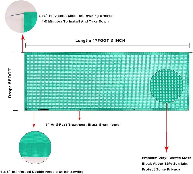 - UV BLOCK & OPEN VIEW - Used as front RV awning, blocks about 86% of UV to protect our skin and eyes. Meanwhile offers a wide view.
