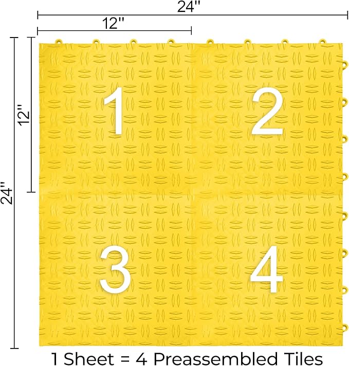 Big Floors GarageTrac Diamond, Interlocking Non-Slip Garage Flooring Tile, Durable, Modular, Heavy-Duty Copolymer, Easy Install (Yellow, 24 Pack of 12 x 12" Tiles)