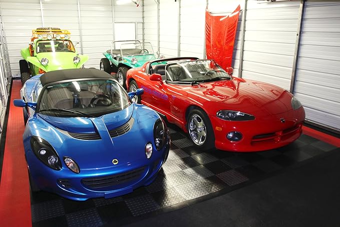 - SLIP RESISTANT AND EASY TO CLEAN: Unlike epoxy or other floor treatments, the surface pattern provides great traction with little or no maintenance. The sturdy, durable surfaces won’t stain and make clean-up a breeze. Car oil, dirt, dust, or other messes are no problem with a mop or shop vac.