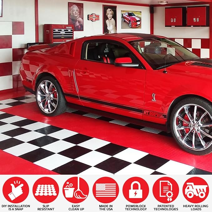 - SLIP RESISTANT AND EASY TO CLEAN: Unlike epoxy or other floor treatments, the surface pattern provides great traction with little or no maintenance. The sturdy, durable surfaces won’t stain and make clean-up a breeze. Car oil, dirt, dust, or other messes are no problem with a mop or shop vac.