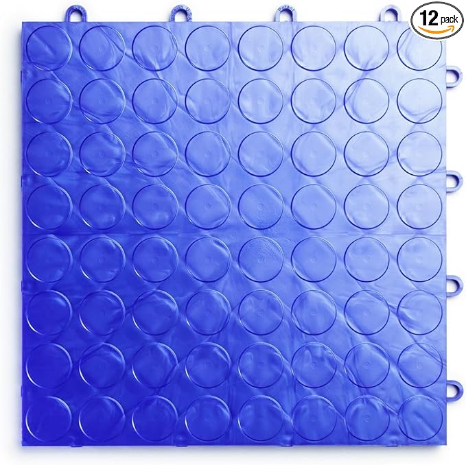 Big Floors RaceDeck CircleTrac, Interlocking Non-Slip Garage Flooring Tile, Durable, Modular, Heavy-Duty Copolymer, Easy Install (Royal Blue, 12 Pack of 12 x 12" Tiles)