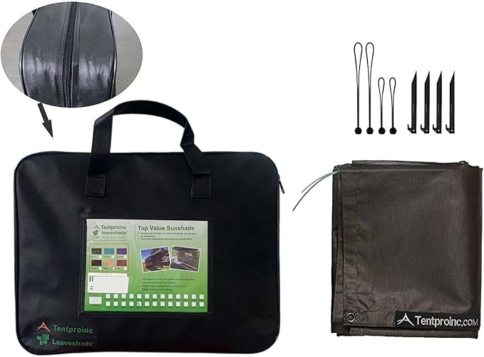 - EASY INSTALL & DISMOUNT - light weight and comfortable hand feeling. 4 sets of plastics stakes & bungee balls included in storage bag. It's easier and faster installed one piece shade, but not zipper combined complicated 2 pcs shade.