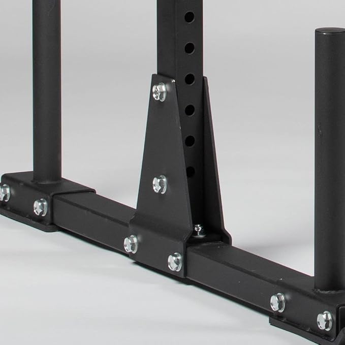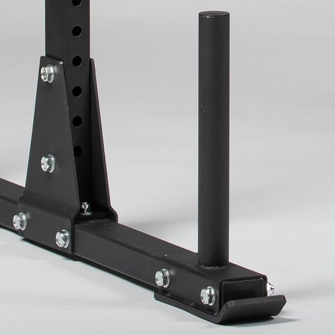 - ADJUSTABLE CROSSBAR: The fat grip crossbar mounts between the two uprights for carries or at the rear of the base to stabilize the squat rack configuration. Additionally, you can set the bar to 72" and utilize it for weight-over-bar with sandbags or slam balls.