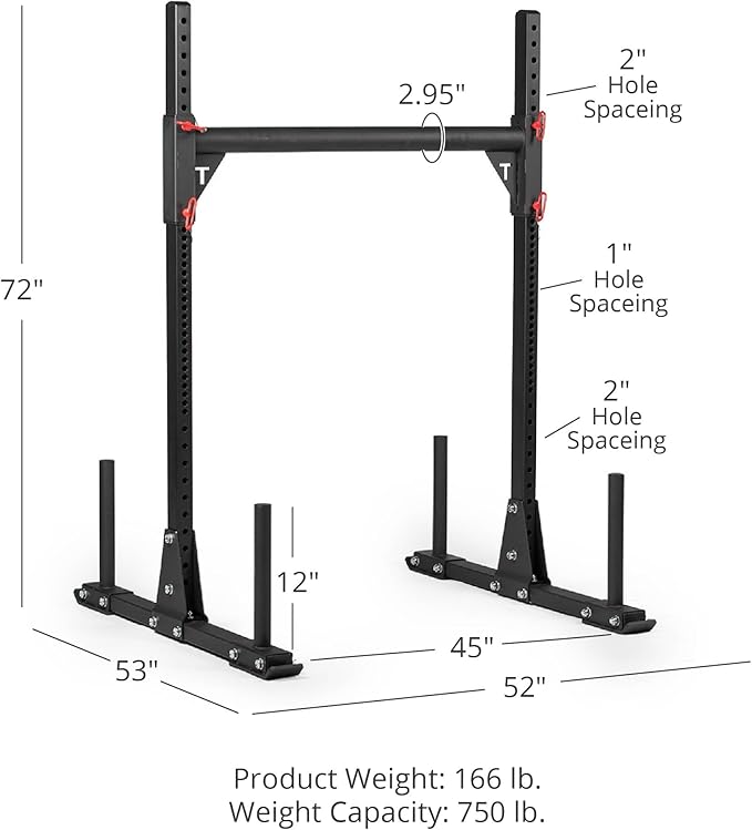 - DIMENSIONS: Weighing 166 LB, the Short Yoke stands 72" high with a footprint of 52" wide x 53" deep, providing an inside width of 45". The fat grip crossbar is 75mm/2.95" round.