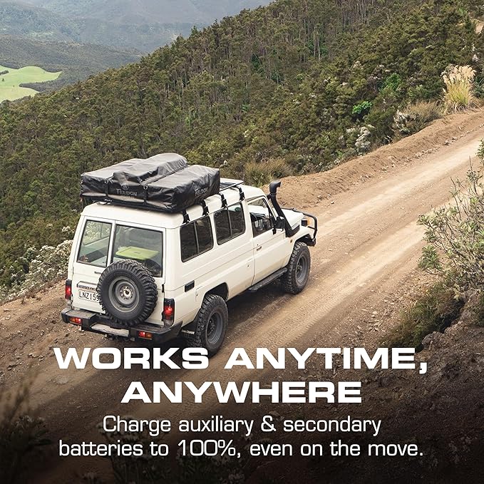 - Built Tough: Engineered for overlanding, RVing, and off-road use. The dual input battery charger withstands deep water crossings, extreme heat up to 176 F, dust, and vibration. Fully sealed electronics deliver reliability in every environment