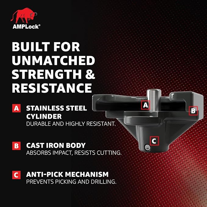 - PREMIUM TRAILER SECURITY WITH 2-INCH BALL HITCH COMPATIBILITY: The AMPLock U-TLS2 Heavy Duty Trailer Coupler Lock is designed for 2-inch ball couplers, providing a reliable anti-theft solution for travel trailers, utility trailers, and boat trailers. This trailer lock is ideal for securing your RV, cargo, or enclosed trailer accessories, ensuring that your equipment stays safe and protected at all times.