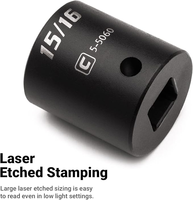 - Single shallow length, 1/2 in. drive, 11/16 in. size socket