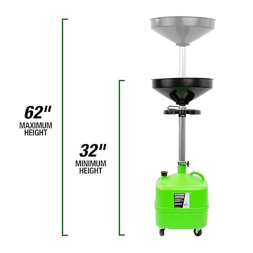 - Adjustable Height Range: Easily adjust the oil drain height from 32" to 62" for flexible use with cars, trucks, and other vehicles, ensuring optimal positioning and efficient oil changes every time.