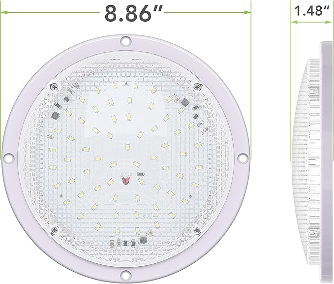 Leisure LED RV Trailer Camper 5th Wheel White 8.5" Round Scare Porch 12V LED Light 600 LM